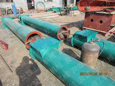 管式螺旋輸送機(jī)一般情況下用于傾斜角度的輸送,管式螺旋輸送機(jī)是利用旋轉(zhuǎn)的螺旋將被輸送的物料沿固定的機(jī)殼內(nèi)推移而進(jìn)行輸送工作,頭部及尾部軸承移 殼體外,吊軸承采用滑動(dòng)軸承設(shè)有防塵密封裝置,軸瓦一般采用粉末冶金,輸送水泥采用毛氈軸瓦,吊軸和螺旋軸采用滑塊連接。