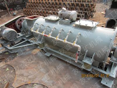 單軸粉塵加濕攪拌機主要用于電力,冶金等行業(yè)的多管除塵器,電除塵器,重力除塵器及其它親水性好,粘性較差物料的排放處理、通過本機的攪拌加濕,使干料變?yōu)榫鶆蚨睗竦奈锪希?避免了卸料和運輸過程中產(chǎn)生的二次揚塵問題、本設(shè)備安裝在灰?guī)欤叶废虏?,由葉輪料機把干灰均勻地輸入到機內(nèi),通過旋轉(zhuǎn)的帶螺旋葉片的棘輪把干粉灰攪拌打散,同時加入適量的水進行強制混合,并將達到預(yù)訂濕度的混合料推向出料口排出,達到加濕排放、本設(shè)備由均勻供料,葉片輸料加水混合擊打加濕構(gòu)成,該設(shè)備結(jié)構(gòu)簡單,密封良好,處理量大,攪拌扭矩大等特點。